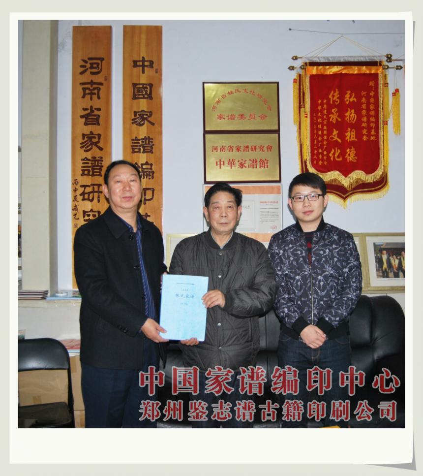 2016年11月10日上午,河南省西平县张氏族谱编修委员会主任张连合先生专程到郑州家谱印刷厂考察,魏怀习总经理、殷家腾副总经理热情接待了客人,双方在热烈的气氛中就西平张氏家谱采用的纸张、装订方式进行了深入的探讨。