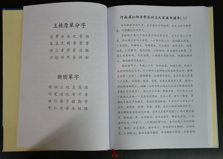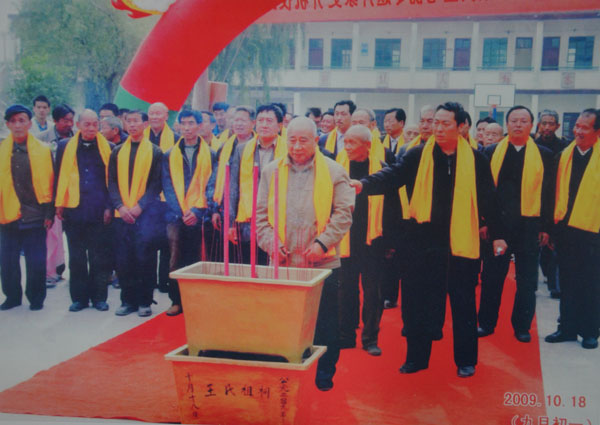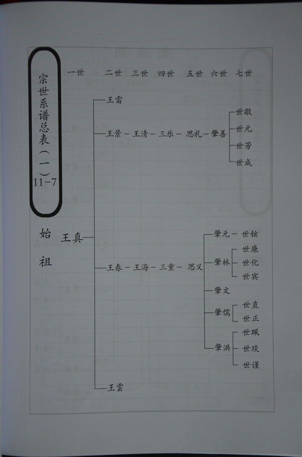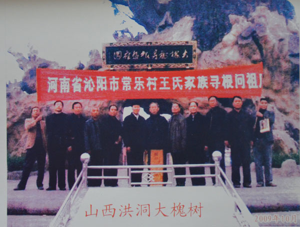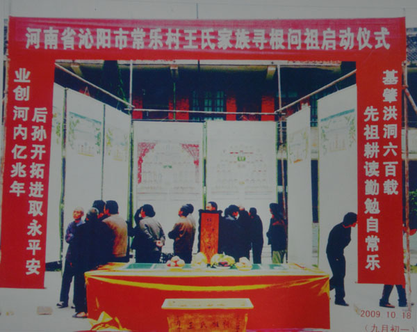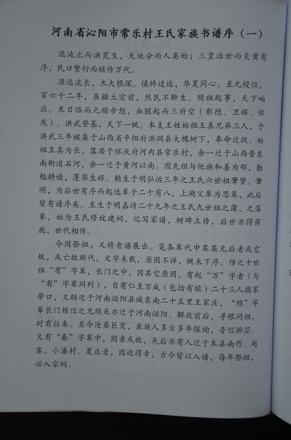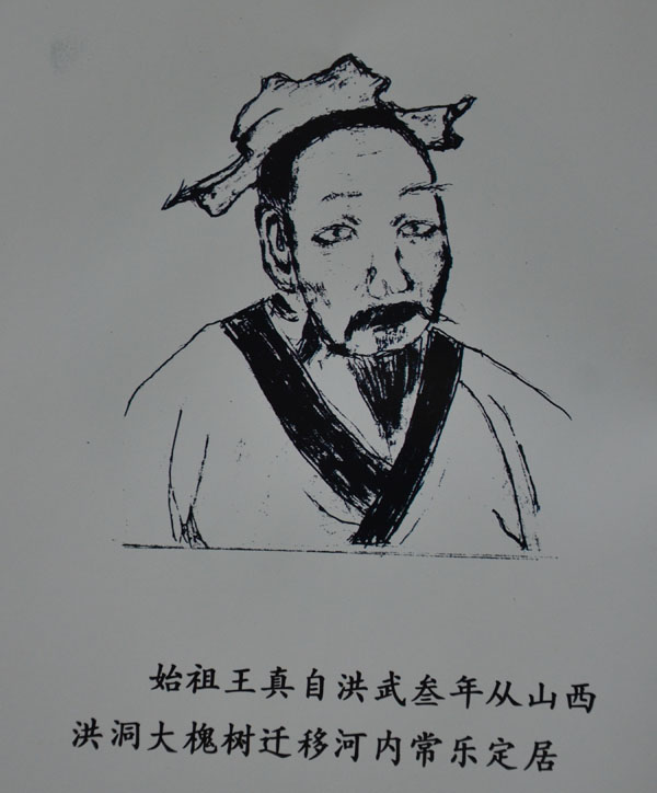 自始祖王真迁于怀庆府河内县常乐村,至今已传二十余辈,阅人间六百四十余年,人口繁衍近三千。始祖跋山涉水,千里迢迢,开疆拓土,筚路蓝缕,创业建家,继传百代,功德昭著,人皆敬仰。鸟恋初巢,云依故岫,故老相传谈轶事,问君足指果如何。代代相嘱,山西槐乡寻根问祖,终因时事动乱,洪洞溯源均未成行。