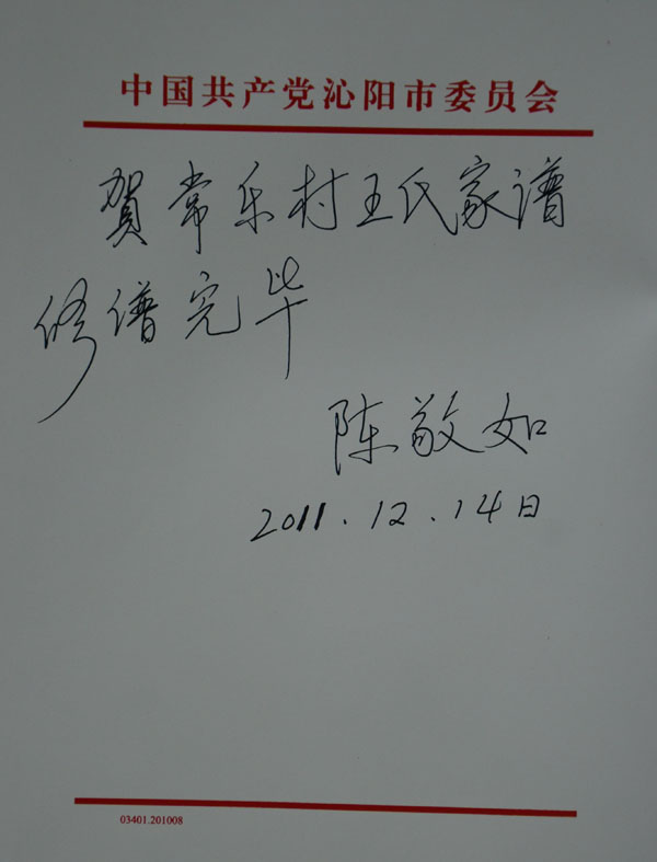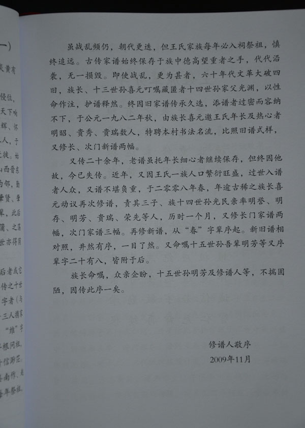 河南省沁阳市常乐村王氏家族书谱序